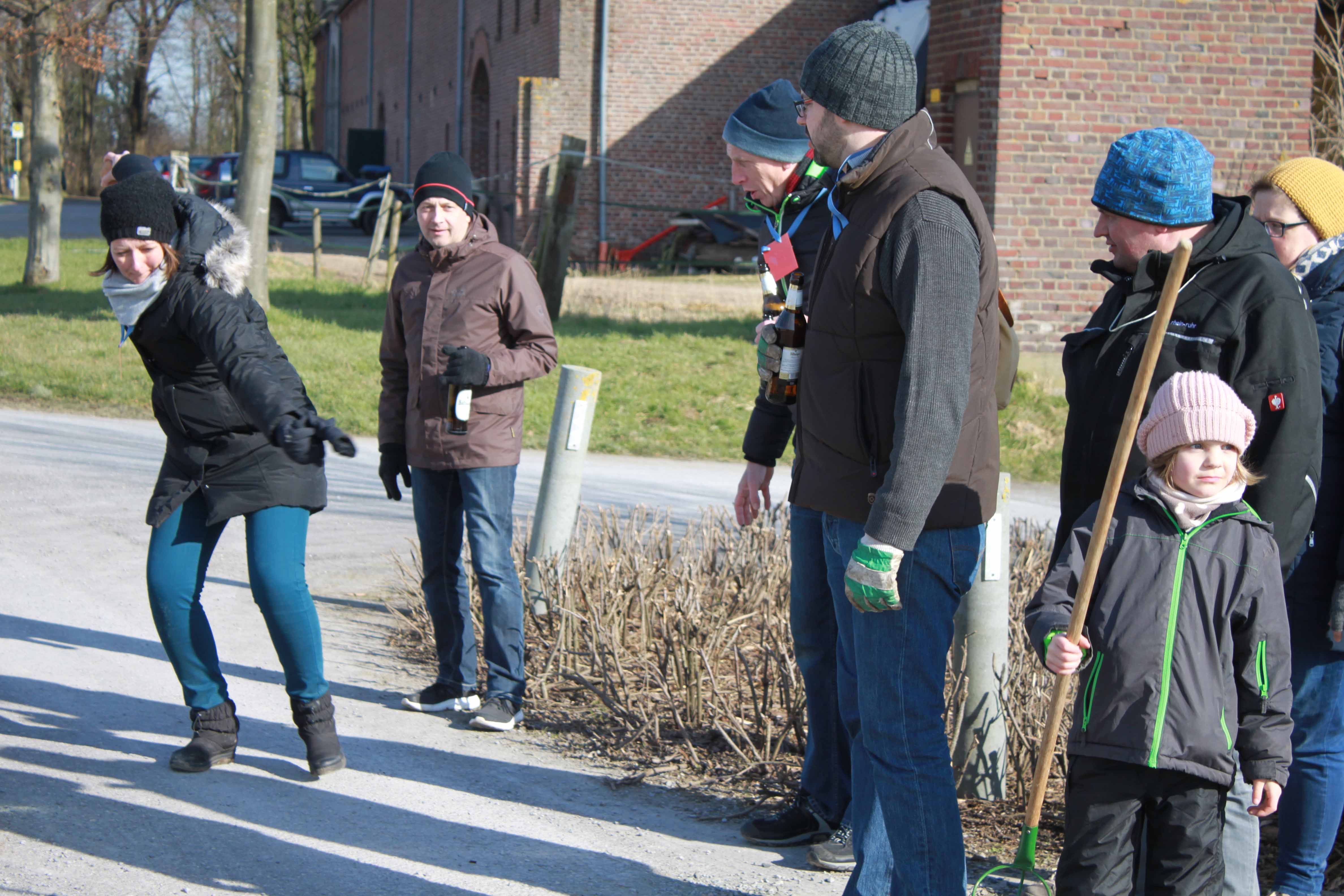 Nach kurzer Pause und angeregten Gesprächen mit den ersten beiden Mannschaften, die sich jetzt auf die Strecke zurück in Richtung unseres Heimatorts machten, mussten wir in die Sonderprüfungen. Zuerst sollte ein mit viel Mühe gebautes Holzziel mit den Bosselkugeln durchworfen werden. Mancher Spieler versagte, vermutlich mangels Zielwasser, andere trafen mit Bravour (und Zielwasser). Hier war der Sieger diejenige Mannschaft, welche die meisten Treffer hatte. Dies floss natürlich ins Gesamtergebnis ein. Rund um das Herrenhaus wurde weiter gebosselt, doch diesmal musste die Kugel rückwärts, in den Anlaufbewegungen ähnlich den eines Kugelstoßers, aber mit der Technik eines kraftvollen Keglers, geworfen werden. Naja, es war ja auch kalt... Leider kam es hier zu einem Totalschaden eines eigens zur Versorgung der Spieler mitgebrachten zweirädrigen Einkaufswagens, als eine kraftvoll geworfene Kugel über das Ziel hinausschoss und ein Rad des Handwagens komplett zerstörte. Eine weitere Beeinträchtigung des Spieles der Mannschaft gab es nicht, schließlich wurde die Kugel von einem Mitglied der eigenen Mannschaft geworfen. So wurde aus dem Zweirad ein Einrad welches zurückgetragen werden musste. Hinter Haus Hohenbusch wurde weiter auf direktem Weg Richtung Hetzerath gebosselt.