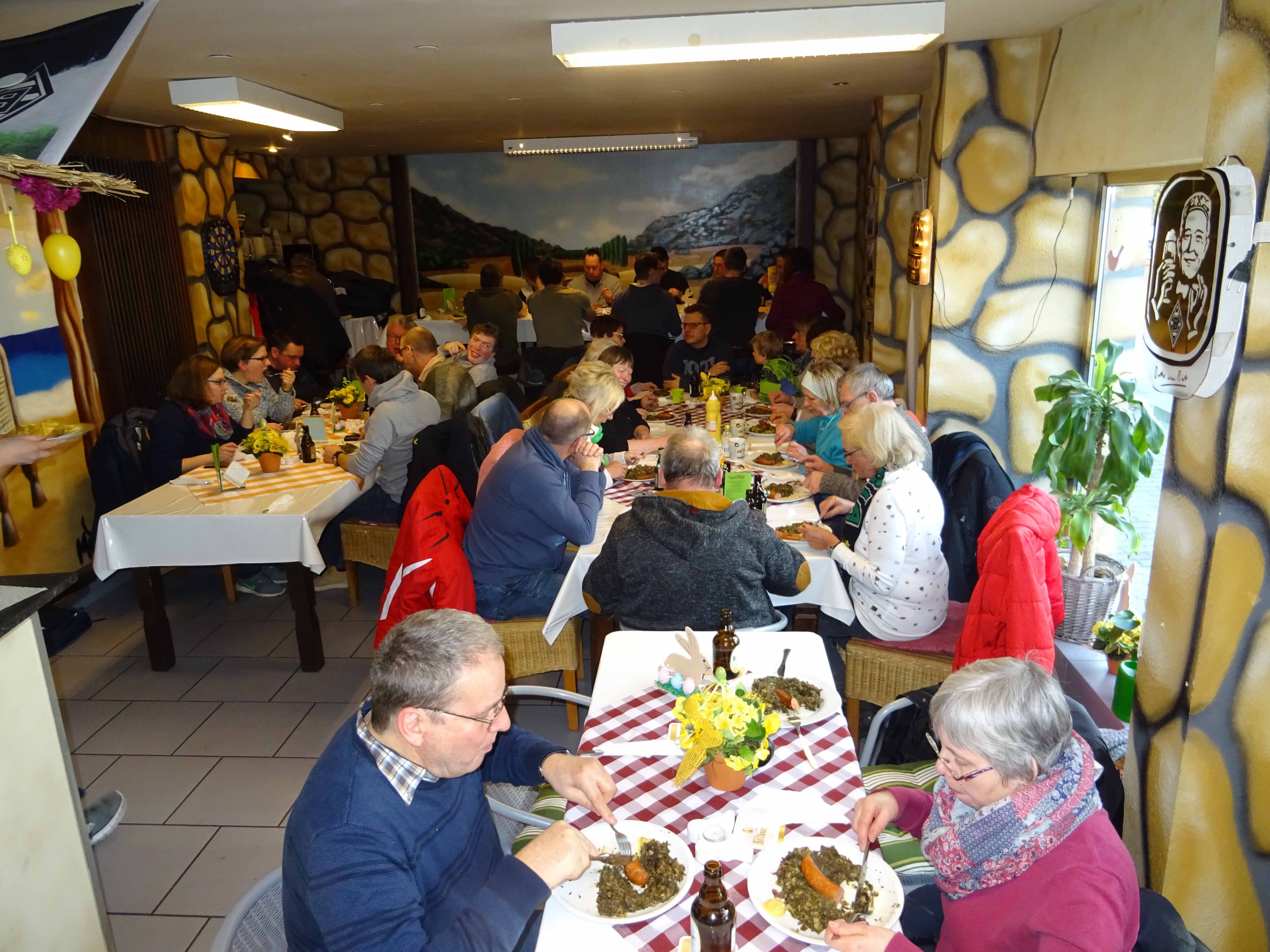 Als wir den Ort ereichten standen die vorläufigen Ergebnisse fest. Alle Mannschaften trafen sich zur Siegerehrung und angeregten Fachgesprächen rund um Strecke und Bosseln bei der Pommes Queen ein. Während die Spieler und zahlreiche Gäste bereits mit Grünkohl und Mettwürstchen versorgt wurden, rechneten die Schiedsrichter den Gesamtsieger aus. Auch in diesem Jahr stellte der „My Verein“ das Siegerteam. Ihm gelang es den Titel des Hetzerather Bosselmeisters zu verteidigen und durfte den Wanderpokal, überreicht vom ersten Vorsitzenden der IGH Heinz Willi Wyen, erneut für ein Jahr sein eigen nennen. Doch wer weiß wie es im nächsten Jahr wird? Bedingt durch die hohe spielerische Qualität aller Teilnehmer entschied der „My Verein“ mit gerade einmal zwei Würfen weniger das Ergebnis zu seinen Gunsten. Zwischen Platz 1 und Platz 4 lagen sechs Würfe. Dies deutet auf eine hohe, schon fast internationale Klasse der Hetzerather Bossler hin.