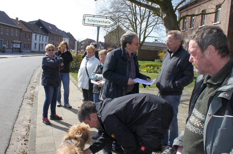 Selbst das Wetter spielt mit, als sich die Gruppe am 23.03.2017 vor unserer Kirche trifft. Sonnig, nicht zu warm und ... kein Schnee, ideal um die mit zwei Stunden geplante Wanderung anzugehen. Heinz Willi Wyen schaut in gespannte Gesichter als er seine Begrüßungsrede hält. Auch ich war gespannt.