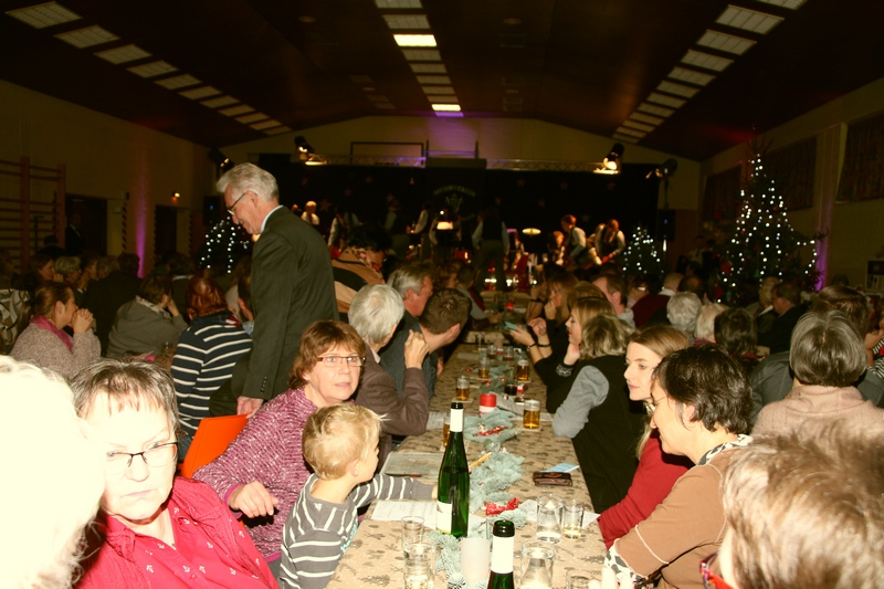 Was ist das Besondere, warum hat es sich für jeden Besucher gelohnt, den Samstagabend in der Mehrzweckhalle mit dem Orchester und den Nachbarn zu verbringen? Ganz einfach: Es war ein Fest für die gesamte Familie, eine Veranstaltung für Jung und Alt, die damit begonnen hat, dass unsere Kleinsten (Kinder aus dem Kindergarten) vor dem musikalischen Programm (Beginn 19.30 Uhr) den Weihnachtsbaum in der Halle schmückten. Wie jedes Jahr wurde die Sporthalle in ein besinnliches, vorweihnachtliches Ambiente verwandelt. Herzlichen Dank allen Helfern und Spendern.