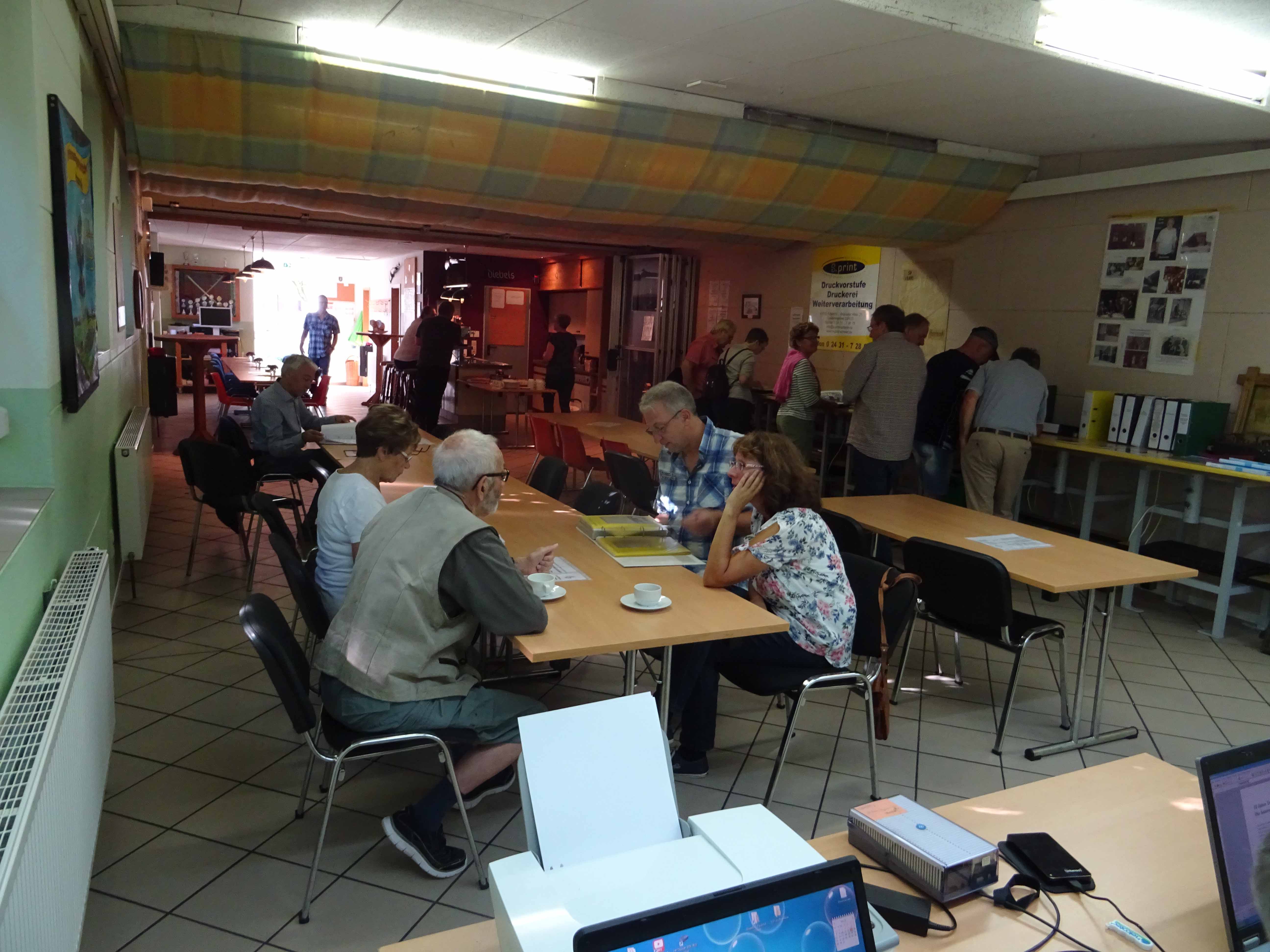 Dass auch einige Gäste ihre alten Bilder an diesem Tag mitbrachten, hat uns natürlich besonders gefreut. Sie wurden sofort eingescannt, um sie zu erhalten und einige Namen der abgebildeten Personen zu notieren. Rainer Rogowski, der zweite Vorsitzende der IGH, hatte die entsprechende Technik dabei und „voll im Griff“. Wer wollte, konnte sich selbstverständlich auch das Hetzerather Turmarchiv ansehen. Heinz Willi Wyen war immer gerne bereit, diesen Wunsch zu erfüllen und pendelte öfters zwischen Schützenhalle und Turmarchiv hin und her. So verging der in doppelter Hinsicht „historische Tag“ wie im Flug. Zahlreiche Informationen konnten ausgetauscht werden und so manches „Hetzerather Mysterium“ wurde aufgeklärt, auch wenn es nur der Name eines längst verstorbenen Einwohners war.